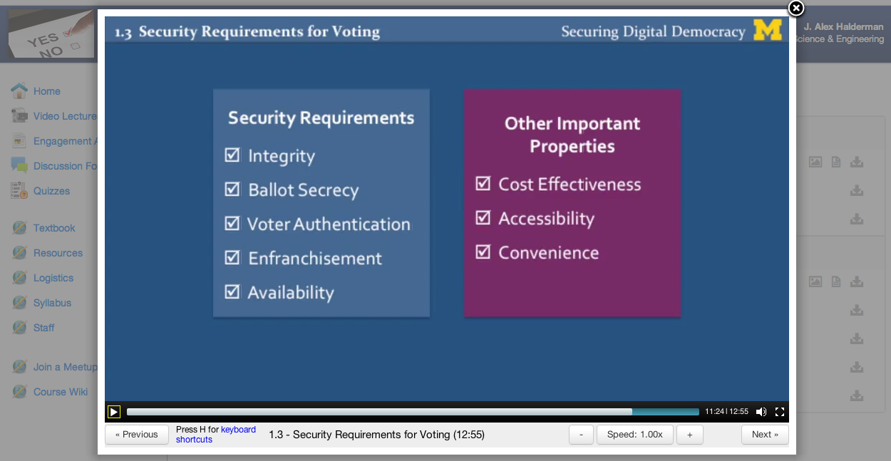 Auf coursera.org ist diese Woche ein Onlinekurs zum Thema Sicherheit von (elektronischen) Wahlen gestartet.